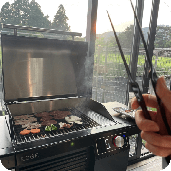 エアコン完備のインナーテラスで、季節を問わずBBQを。