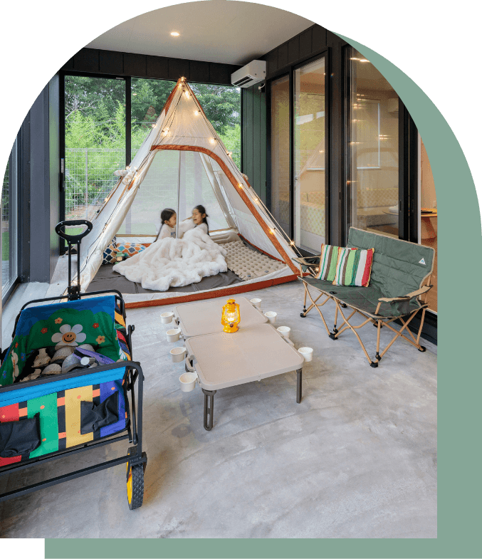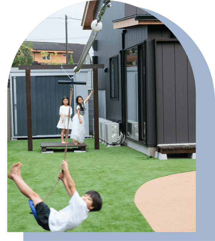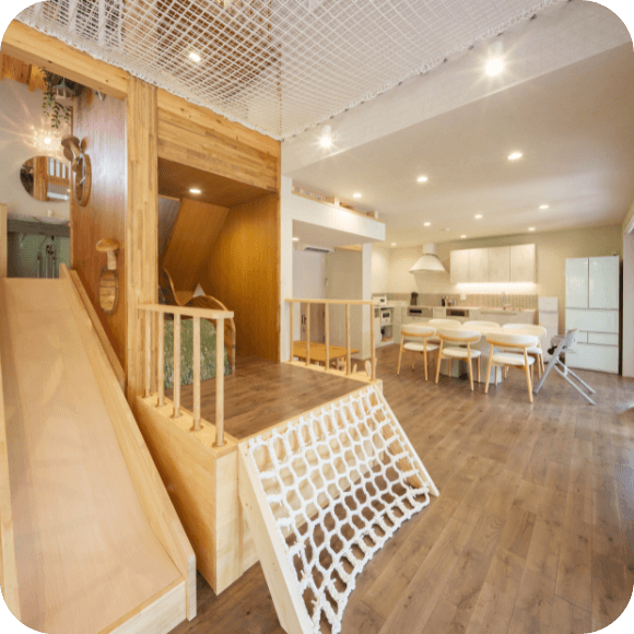 お庭で思いきり遊んで、室内でワクワクして、テラスでくつろいで、季節の楽しみに出会う。Kids’ Play Villaで過ごす時間は、家族みんなの“楽しい”であふれています。
