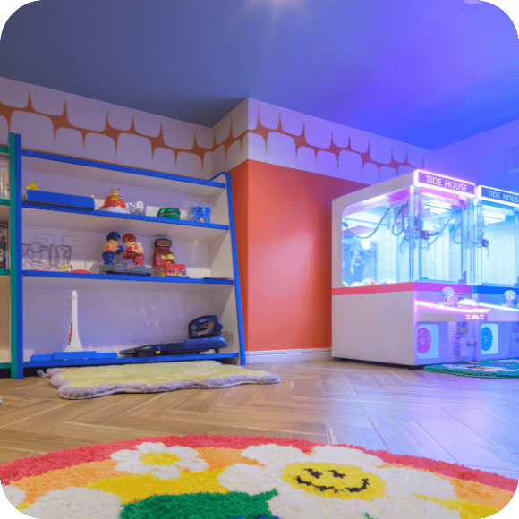 雨の日でも思いきり遊べる室内アスレチック。無限クレーンゲームや漫画、おもちゃが並ぶ秘密基地。