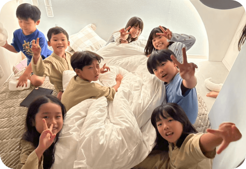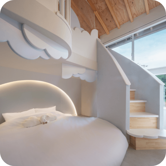 天井には雲のライトが浮かび、ふかふかの布団に包まれながら、