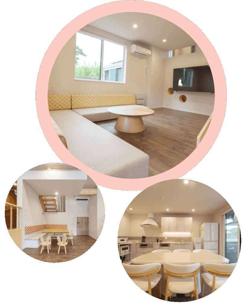 テーマの異なる3つのお部屋と、安心して過ごせる共用スペース。
